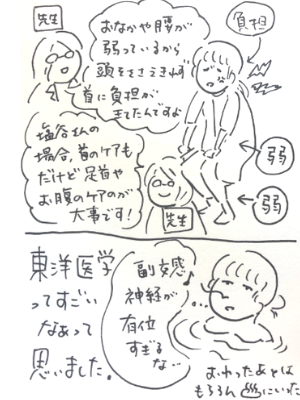 なぜ鍼灸マッサージ師になったのかと、よく聞かれます。子どもの頃は絵を描くのが好きで、大人になってもモノづくりやデザインに関係することをずっと続けたい、と思っていました。それが、入院した友人を言葉で励ます以外に何かできることをしたいと思ったことがきっかけで、この道に入りました。