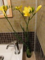 実際の写真を送ってくれというので撮った、先週のきよら鍼灸院の花たち。