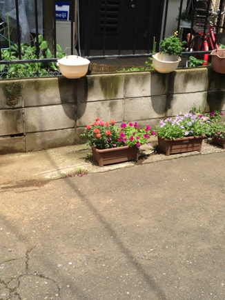 目の前のお宅の鉢植えから飛んだ日々草の種が芽吹いたようです。