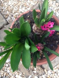 にんにく4片をすりこぎで潰して小麦粉投入。