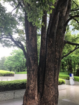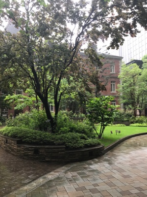 ここは雨の日も緑に赤れんが映えていいな。