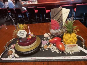 スタッフの男性3人がHappy Birthdayをフランス語で歌ってくれました。