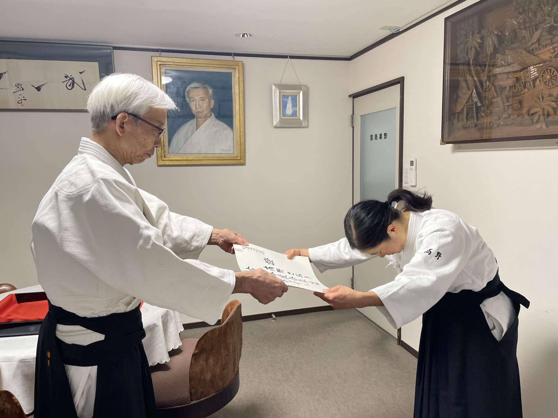 今朝は稽古後に道主から証書をいただくことになっているから、絶対に遅刻したらダメ、と思ったせいで