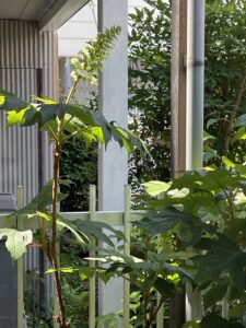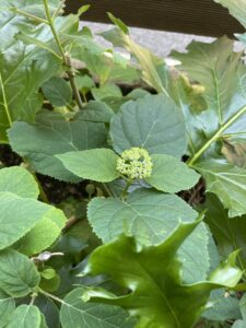 カシワバアジサイは今年も無事いくつか咲きそうです。