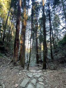 山頂まで山道を1時間ほど。登山靴必携です。