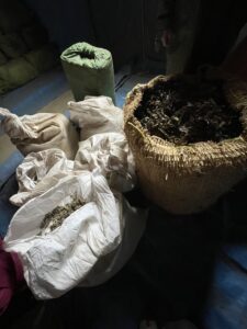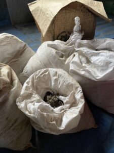 もぐさは、よもぎの葉を真夏の一番暑い時期に収穫し、冬のこの時期に乾燥させてパリパリにします。