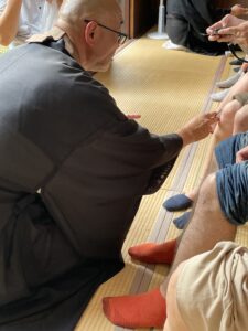 住職がお灸してくださいます。こちらも・・・熱かったですが、艾柱の大きさは高源院と東泉寺よりは小さいです。