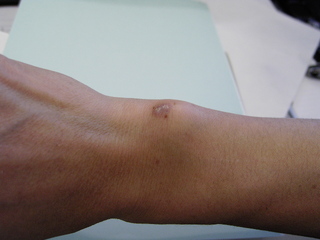 右手の豆状骨のあたりをしょっちゅう台所の水道の蛇口に打ちつけて